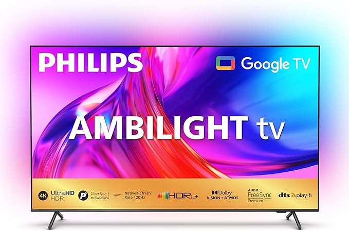 - Next-Gen 3-Sided Ambilight TV – A Visual Revolution Transform your room with Philips’ exclusive 3-sided Ambilight technology, where intelligent LED lighting adapts to on-screen action in real time, making movies, sports, and games more immersive than ever